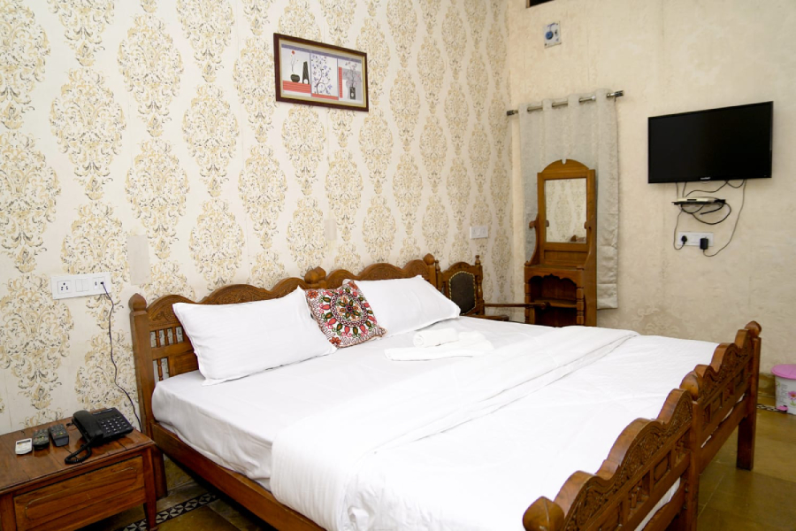 Our Super Deluxe Rooms at Jaisalmer Haveli are designed for comfort and relaxation. Each room features elegant interiors, cozy bedding, modern furnishings, and a soothing ambiance. Guests enjoy essential amenities, well-lit and clean spaces, and attentive room service, making these rooms ideal for business, leisure, or family stays. Experience a perfect blend of style, convenience, and tranquility during your visit.